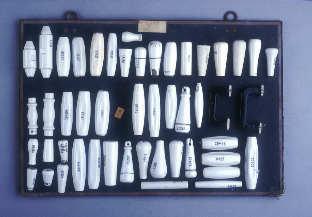 Klassischen Ursprungs sind die Formen der Dinge auf diesen Mustertafeln. Fadenführungen, Isolatoren, Hülsen, Klemmen, Fassungen, Spindeln, Laufräder, Knöpfe, Kappen, Haken, Siebe, Krümmer, Griffe, um nur einige aufzurufen, waren nur ein kleiner Teil der Produktpalette, die von der keramischen Fabrik Kloster Veilsdorf in Thüringen bis in die Mitte des 20. Jahrhunderts entwickelt und hergestellt worden sind.